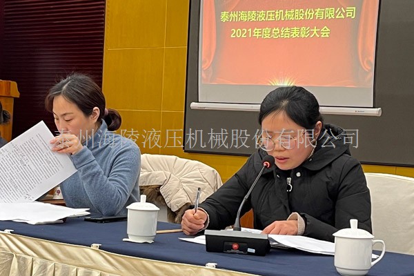 董事長丁克芳主持會議并作出重要指示:2021年注定是一個不平凡的一年,全體職工不畏艱難,抗擊疫情;無私奉獻,迎難而上;一步一個腳印為公司的穩(wěn)步發(fā)展做出巨大貢獻。在外部環(huán)境極為艱難的情況下,使公司業(yè)績逐步穩(wěn)定增長,邁上新的臺階!企業(yè)客戶受眾面大幅擴展,得到越來越多的認可,這些都離不開全體職工的辛勤奉獻!在新的一年中海陵液壓將繼續(xù)精益求精,升級技術(shù)、優(yōu)化創(chuàng)新產(chǎn)品;加大研發(fā)力度,加大研發(fā)資金投入;加快產(chǎn)品升級、更新?lián)Q代的步伐;堅持科學發(fā)展,注重安全生產(chǎn);提高職工的福利待遇,提升職工技能素養(yǎng)!在往后的工作中,不斷提升企業(yè)品牌、為客戶創(chuàng)造價值。這也是全體海陵人的不懈追求!