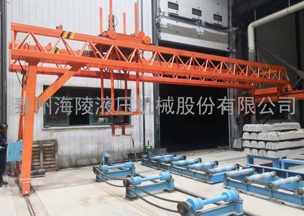 我公司設(shè)計制造的碼垛機由行走航架、升降裝置、自動夾緊定位裝置、減速機、電控系統(tǒng)等組成。設(shè)備整機為鋼結(jié)構(gòu)件。行走航架通過行走電機驅(qū)動減速機帶動鋼軌輪旋轉(zhuǎn),該電機帶剎車,可在任意位置剎車并停止行走。