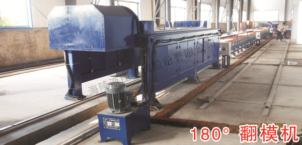1. 翻轉(zhuǎn)裝置:用于將混凝土構(gòu)件翻轉(zhuǎn),以便進(jìn)行脫模操作。它通常由液壓缸或電動機(jī)驅(qū)動,可以旋轉(zhuǎn)一定角度,將混凝土構(gòu)件從水平位置翻轉(zhuǎn)到垂直位置。